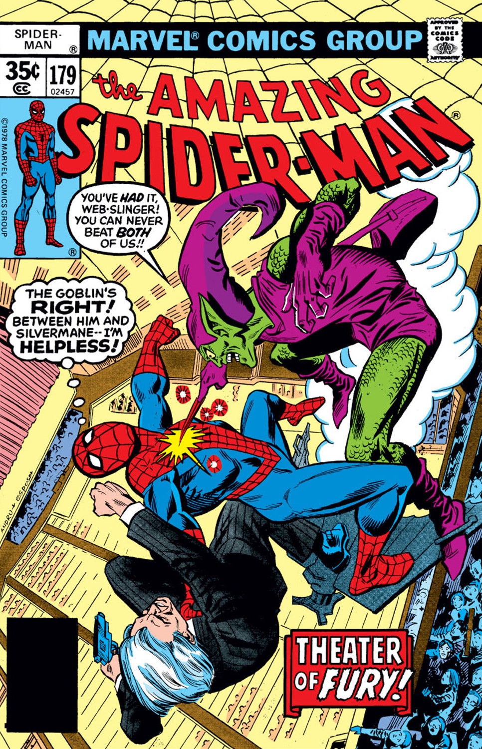 Cambiando a Spider-Man, Peter se encuentra en medio de una pelea entre Silvermane y el Duende Verde. Cuando el Duende intenta escapar en su planeador con Silvermane como prisionero, Spider-Man trata de detenerlos. Sin embargo, el planeador del Duende falla y la telaraña de Spider-Man se rompe, haciendo que los tres hombres caigan desde una altura fatal.