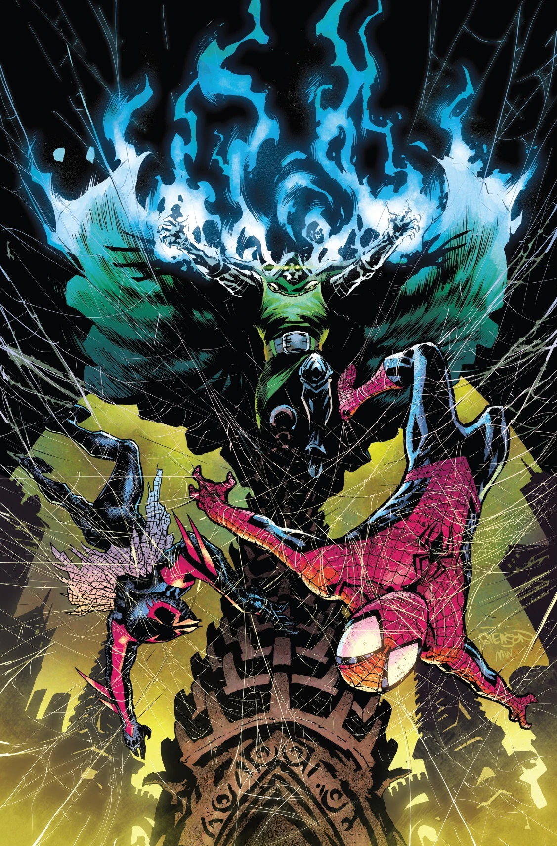 En su camino hacia las Naciones Unidas, Spider-Man entra en pánico al ver que el Doctor Doom ha sido asesinado, señalando que incluso él -un superhéroe reacio a matar- no debería derramar lágrimas por la muerte de Doom y que un mundo sin él sería un lugar mejor, pero que nada es tan sencillo. Mientras las fuerzas de seguridad de Latverian apuntan con sus armas a la multitud que les rodea y gritan que sólo las manos de Latverian pueden tocar el cuerpo de Doom, Spider-Man bromea diciendo que Doom les prometió que harían un pulso. Cuando los guardias latverianos abren fuego, Spider-Man esquiva las balas y se regaña sarcásticamente por no haber tenido más tacto. Al aterrizar sobre el cuerpo de Doom, las fuerzas de seguridad de Latverian lo acorralan de inmediato. Decidiendo poner a prueba su teoría y aliviar su dolor, Spider-Man arranca la cabeza del Doctor Doom... y revela que es un Doombot. Mientras Spider-Man comenta que el envío de dobles robóticos por parte de Doom es prácticamente un chiste recurrente y que el verdadero Doom probablemente no ha salido de su apartamento en años, el Doombot le lanza un torrente de llamas verdes. Al levantarse, el Doombot vuelve a colocarse la cabeza mientras el Doctor Doom habla a través de él, diciéndole enfadado a Spider-Man que es consciente de lo que acaba de ocurrir y que hay que hacer un ajuste de cuentas.
