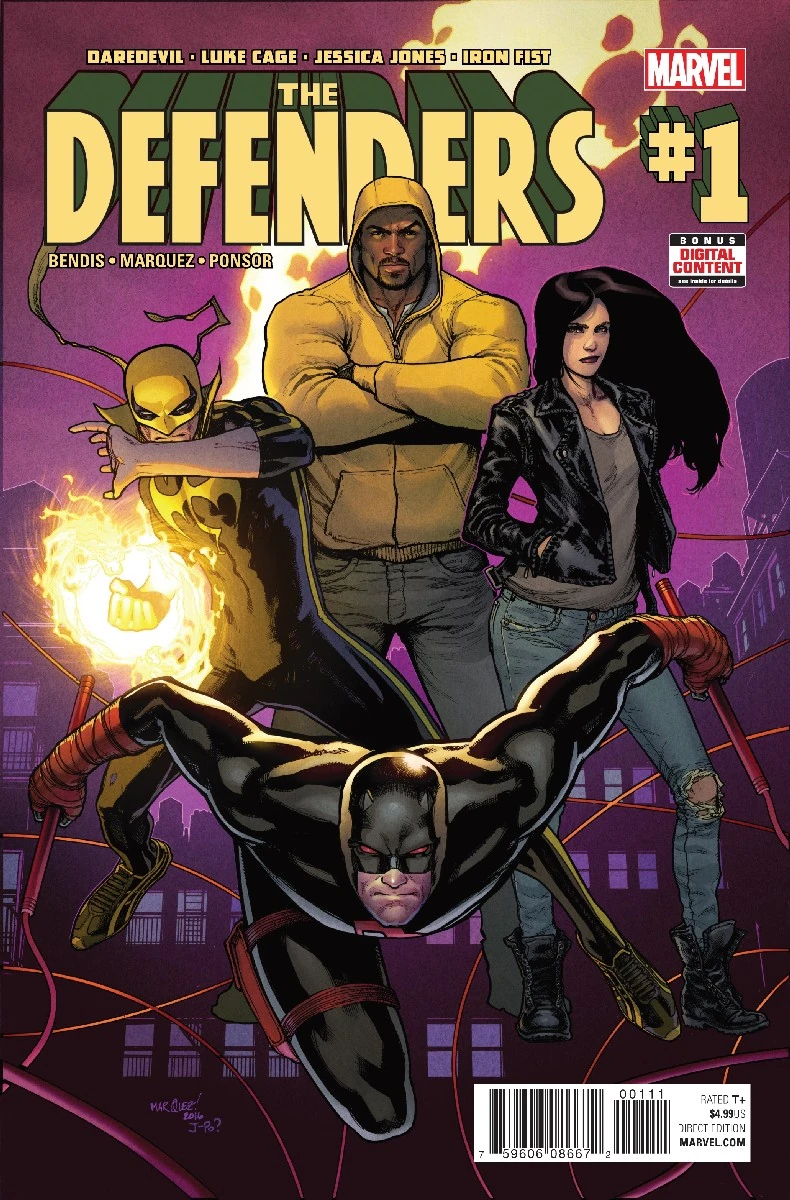 ¡Daredevil! ¡Luke Cage! ¡Jessica Jones! ¡Puño de Hierro! ¡Individualmente, estos cuatro héroes han estado en primera línea de batalla para mantener las calles de la ciudad seguras y protegidas! Pero ahora, con un mortífero enemigo del oscuro pasado que está haciendo un gran movimiento para unir a los bajos fondos, tendrán que convertirse en algo más: ¡tendrán que convertirse en DEFENSORES! ¡Brian Michael Bendis y David Marquez se unen para traerte el próximo gran super-equipo, en la tradición de NEW AVENGERS!