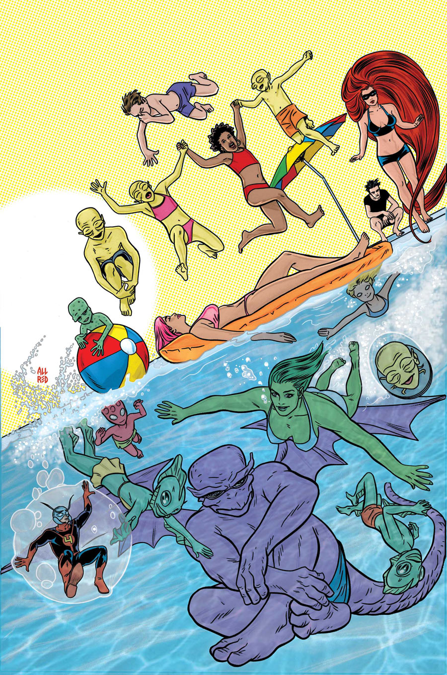 Bentley-23, al que se le ha asignado un proyecto de vídeo sobre sus compañeros, ha decidido hacer el suyo sobre los niños de Uhari. Durante el rodaje, los Cuatro Fantásticos reciben una invitación a una fiesta en la piscina organizada por Charles Cotta, el director general de Julian Enterprises. Pronto se encuentran en la azotea de Julian Enterprises donde Charles Cotta desvela la piscina que tiene allí arriba. Mientras los niños se sumergen en el agua, Bentley entrevista a los Moloides sobre los niños Uhari, pero no se entera de nada. Mientras se produce una pelea de chapoteo, Medusa le dice a Ahura que le haga compañía a su prima Luna.