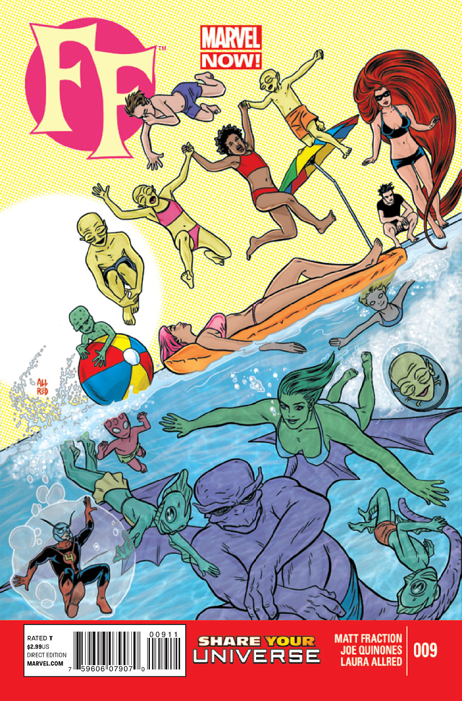 En el exterior, Bentley continúa entrevistando a los demás sobre los niños Uhari. En concreto, les pregunta si pueden saber cuál es Vil y cuál es Wu. Una pregunta que nadie parece poder responder. En medio de esta entrevista se desata otra pelea de salpicaduras y los chapoteos acaban por entusiasmar tanto a Ahura que finalmente se une a ellos lanzándose al agua con un cañón. Mientras tanto, Cotta revela su verdadera forma para demostrar su punto de vista, diciéndole que el objetivo de Empresas Julian era poder ayudar eventualmente a los Cuatro Fantásticos. Después de defender su caso, los Cuatro Fantásticos aceptan el anacronismo.