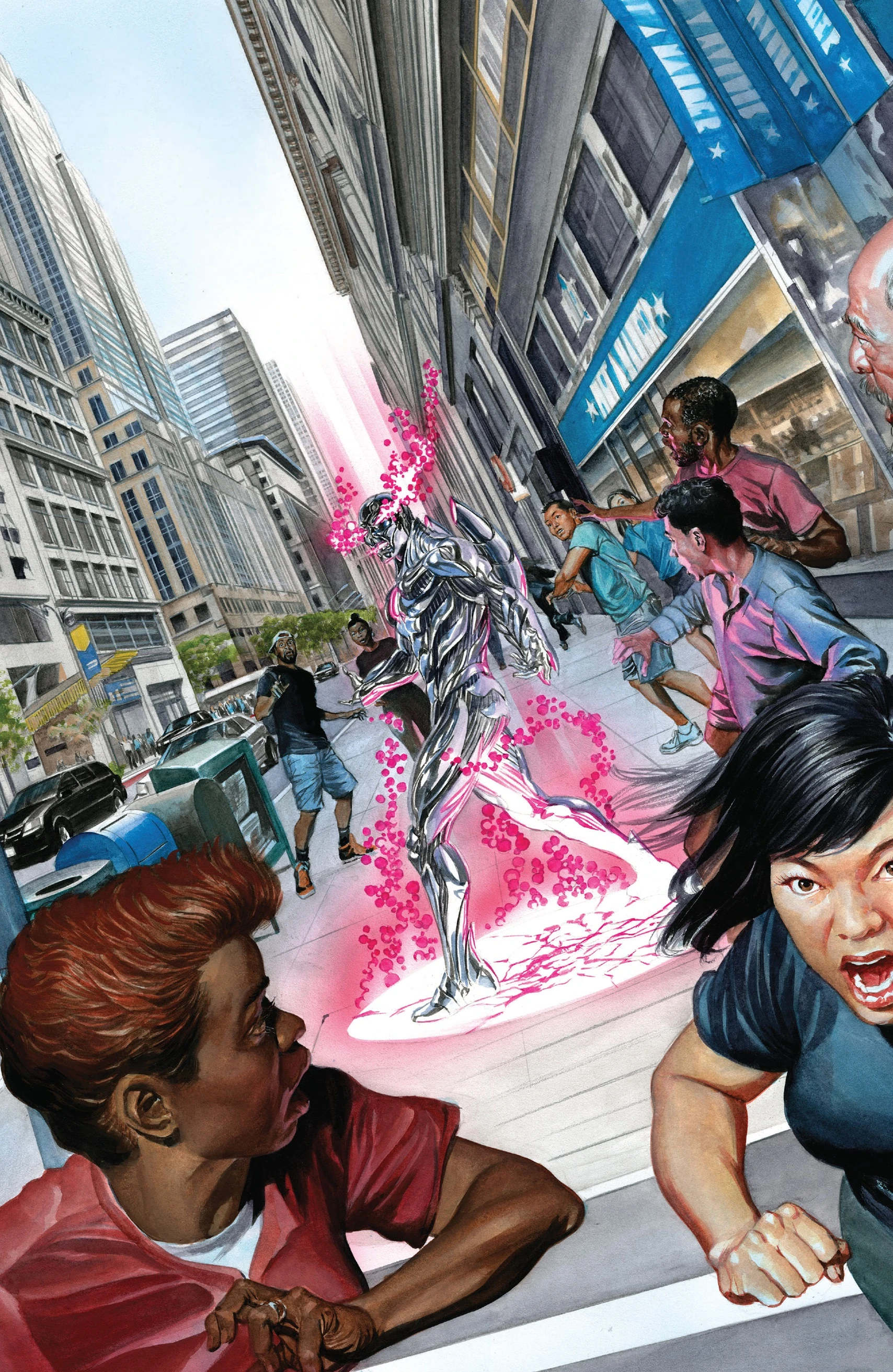 El número jugó con el extraño doble propósito de terminar la batalla a bordo del Godkiller (la secuencia de escape de eso, efectivamente) y el regreso de Tony a la Tierra. Está claro que son estados de ánimo diferentes, pero lo intento. Sospecho a medias que leer la huida del Godkiller directamente después del último episodio ayudaría a ello. Este número pasó por un montón de borradores y reescrituras. No tantos como el siguiente, pero las opciones fueron realmente estudiadas. Portada: La última portada de Greg, y es la clásica del modelo heroico. Más metafórica que literal, obviamente. Página 1: En realidad fue una sugerencia de Mark P, que pensó que podría valer la pena recordar a los lectores por qué 451 estaba haciendo todo esto de todos modos. Cuando se escribe una historia larga -y ORIGEN SECRETO es una historia que lleva en marcha desde el número 6- es fundamental encontrar la forma de recapitularla. Aproveché la oportunidad para dar cuerpo a las últimas partes del trasfondo de 451. Algunas personas han mencionado "Un grito que no cabe en mi cabeza" como línea destacada. Cuando la escribí, pensé: "Vale, ¿a quién estoy estafando aquí?". Lo más cerca que puedo llegar es a la línea de Jon Savage sobre la sensación de tener "bombas A en la cabeza" cuando hacía sus primeros fanzines, y está lo suficientemente lejos de eso para que me sienta bien. Eso es de ENGLAND'S DREAMNING, btw, que recomendaría a cualquiera. Página 2: Otra escena de restablecimiento y configuración. El reloj de tiempo es algo para lo que probamos un montón de soluciones, en un intento de poner un temporizador explícito en la cosa de la fuga. El meta conocimiento del lector de que Tony probablemente va a escapar tiene que ser ignorado. Si vas a cantar la canción, cántala como quieras, cántala tan fuerte como puedas. Página 3: Los cortes duros entre planos internos/externos ocurren mucho en este número. También se ve la alternancia entre los planos en los que Tony vuela lejos de nosotros (lo que implica velocidad y movimiento, además de funcionar como plano de establecimiento) y los planos en los que viajamos con Tony (por lo que tenemos una experiencia subjetiva de la perspectiva de Tony). Alternando entre ver al héroe y ser el héroe, si nos ponemos en plan Scott McCloud. Página 4: Me gusta la palabra Hustle. Página 5: Ya conoces la frase de Fraction de que los cómics de superhéroes no son ficción escapista, sino ficción de evasión. Como en los cómics de superhéroes convencionales en los que sospechas que el personaje volverá, la alegría está en parte en ver cómo salen del problema? Todo esto es un poco así. Tony lo tiene resuelto, y todos los demás (incluido P.E.P.E.R.) intentan ponerse al día. Página 6: Este es un flashback del número 9. Páginas 7-8: Con el reloj corriendo, nos quedamos en silencio para la secuencia de la fuga. Página 9: Y una gran tienda de héroes de la fuga. Como dije antes, hay que jugar a esto directamente. Y con Tony victorioso aquí, se lo merece. Página 10: Y una pequeña secuela de la misma. El físico de la armadura de Tony cuando se le presiona con fuerza (como fue aquí) es algo que me gusta destacar. La huida de la armadura fue algo en lo que estuve dando vueltas. En cierto modo, me habría gustado dejarlo atrás. El salto temporal de 3 meses en la página es suficiente para que Tony consiga una nueva, después de todo... sin embargo, creí que sería desorientador para el lector, y una implicación muy grande para hacer (o una realmente incómoda para explicar en el diálogo). Página 11: Salto temporal de tres meses, que incluye el resto de las aventuras de los Guardianes de Tony (Sí, esto incluye a Infinity). Mérito de Carlo por conseguir algún detalle menor de los personajes de los Guardianes en el fondo. Groot regándose es mi favorito. Página 12: Sí, Tony está trayendo los restos de 451 a la Tierra. Y sin decírselo a nadie. El "ahora cometo mis propios errores" es una llamada al número 9, justo al principio de la historia. Página 13: Aunque Tony está metido en muchas partes importantes del MU, y lo muestro en el libro, también intento mantenerlo como algo propio. En este caso, Tony ha vuelto a la Tierra en otros libros, pero su ausencia ha sido 100% clave. La forma en que lo justifico es que estuvo de vuelta en la Tierra, pero sólo estuvo aquí por trabajo. No hubo ningún tiempo de inactividad. Es como visitar una ciudad para hacer reuniones de negocios. Esto, sin embargo, es una verdadera vuelta a casa. La Pizza era juguetona. Quería después de esta amenaza existencial, llegar a algo tan neoyorquino y humano como podíamos conseguir. Página 14: Tener cuidado con el diálogo para que P.E.P.E.R. no se confunda con Pepper. Como la sensación de velocidad en el último panel. Página 15: Pepper es muy mala. Página 16: El comienzo de la historia fue el cumpleaños de Tony en el espacio, si recuerdas todo el camino hasta el número 6. Di un montón de nombres para la gente que aparecería, y Carlo seleccionó a quien le pareció que encajaría. Al fin y al cabo, se trata de una sorpresa con muy poca antelación. Me gustaría tener espacio para hacer que Tony saliera desnudo, en el último panel. Página 17: Toda esta secuencia fue divertida de escribir. Tener a Tony interactuando con el resto de su mundo de nuevo fue tanto un regreso a casa para mí como para Tony. Había echado de menos a Pepper. Quería que algo grande sucediera cuando ella estuviera en el espacio. Un compromiso tenía sentido. Página 18: Marc no tiene mucho en este número, lo que es una pena. Había un par de páginas más ampliando esta escena en el primer borrador, que perdí para dar más espacio a cosas que eran más esenciales al 100%, es decir, la apertura y la siguiente escena. Página 19: Tony considerando la bebida nunca es una buena señal. Página 20: Y el cliffhanger, estableciendo la conclusión de todo el asunto. 