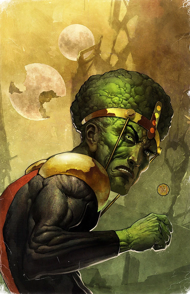 Sam Sterns que una vez fue poco más que un obrero torpe que nunca se había completado aún la escuela secundaria. Como adulto, Sterns había encontrado un empleo de trabajo en el turno nocturno en una planta de investigación química. Una noche, él se estaba moviendo contenedores de residuos, cuando uno de los contenedores agrietados baño abierto él en la radiación gamma. Sterns sobrevivió lo que normalmente sería una dosis letal de radiación, pero no sin costo. Inicialmente, sin embargo, los efectos secundarios parecía completamente beneficioso. Sterns descubrió que su inteligencia ha aumentado mil veces, por lo que retuvo la información con la precisión de una computadora. Él comenzó a leer vorazmente, acumulando conocimientos tanto como fuera posible. En poco tiempo sin embargo, su cuerpo irradiado con rayos gamma comenzó a mutar. Su piel se volvió verde permanente, y su cráneo aumento de tamaño.