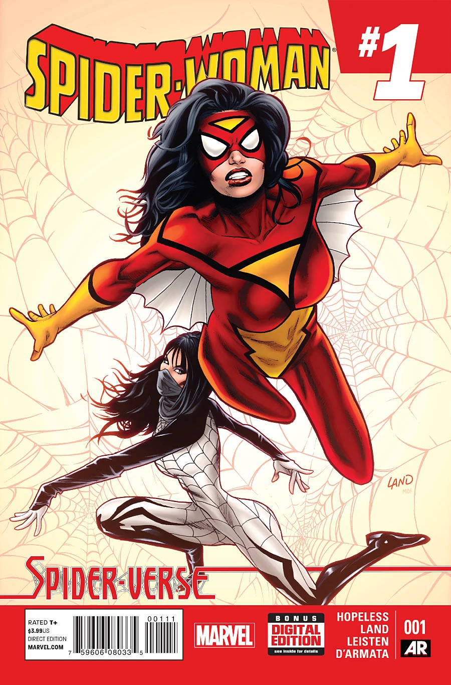 • Dennis Hopeless (CABLE & X-FORCE, AVENGERS: ARENA) y Greg Land (UNCANNY X-MEN) te traen una aventura que abarca el universo protagonizada por Jessica Drew Spider-Woman y el nuevo héroe araña, ¡SILK!