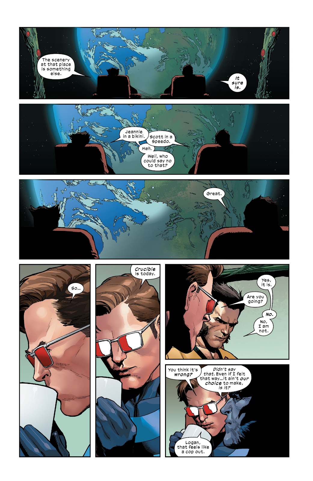 What struck me the most is that Logan (Wolverine) is in this with Jean and Scott, I saw about the conversation on the moon he had with Scott and I also saw that in the Hickman run, they had connecting rooms.