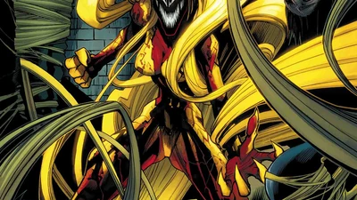 Secondly, I should mention its capabilities. As other Symbiotes it can change shape and heal the host. Its unique trait is tendrills made with trichokinesis (ability to control hair) which is cool. With Andi it unlocked many interesting abilities as well. For example, it changed her entire body structure to be able to swim like a fish. It made her wings to fly out of the water too. Moreover, as we saw on Scream: Curse of Carnage #8 cover, it would use OP and badass Hell Mark (more about it and Mania symbiote next time) if this series weren't canceled.