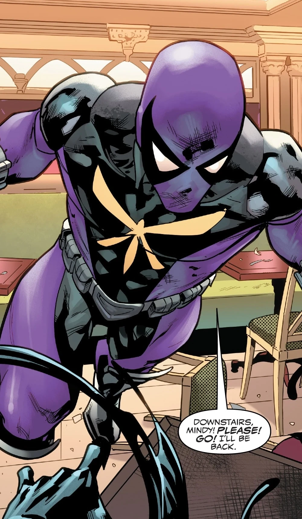 Son équipement fut volé par un cambrioleur professionnel, aux ordres de Belladonna, et c'est Spider-Man, lui même accusé d'un meurtre commis par ce voleur, qui vint en aide à Brown.[7]