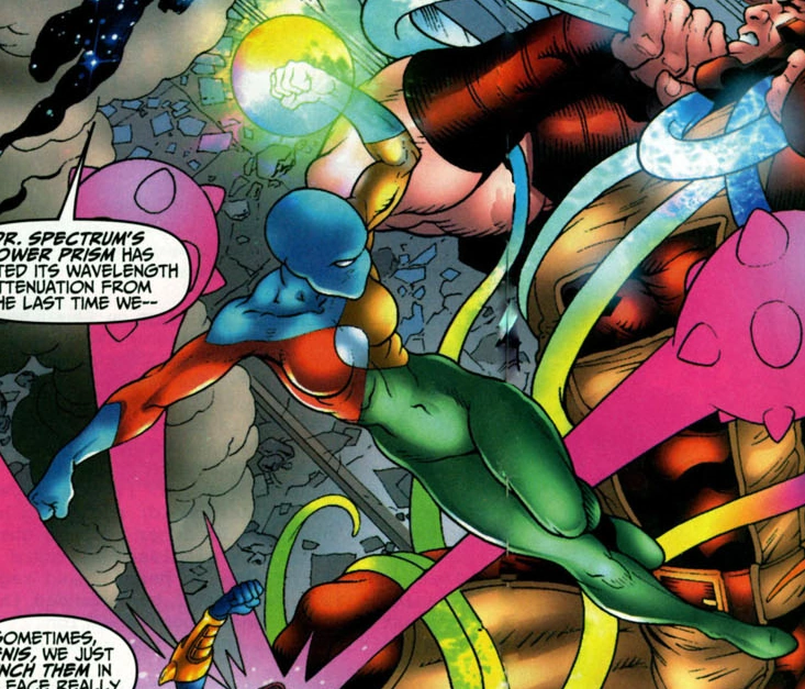 Elle fut contrôlée par l'Homme-Pourpre et recrutée au sein de l'Escadron Sinistre. Elle reçut le Prisme de Pouvoir et devint le nouveau Docteur Spectrum.