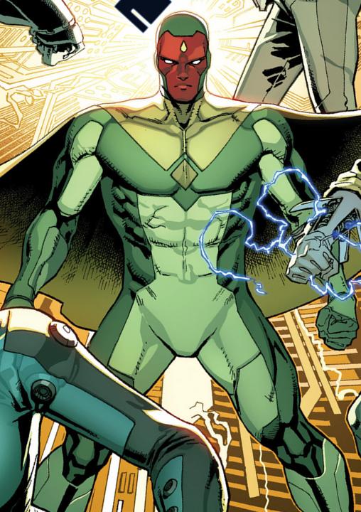 Vision est un synthézoide, un homme artificiel hautement avancé, construit par le robot Ultron pour être employé comme instrument de vengeance contre ses adversaires. S'étant rebellé contre son créateur, Vision est devenu l'un des membres les plus courageux des Vengeurs. Avec son pouvoir de contrôle sur sa propre densité, permettant de devenir intangible ou dur comme du diamant et possédant une gemme solaire absorbant l'énergie solaire, Vision est un poids lourds de l'équipe, mais aussi la personne la plus calme.