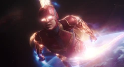 - Volare: mentre si avvolge con l'energia cosmica, Danvers può volare, planare e fluttuare nell'aria e nel vuoto dello spazio senza aiuto esterno. Può volare a velocità incredibili, decollare senza rischi nell'atmosfera e persino nello spazio esterno e atterrare in sicurezza sulla superficie di un pianeta con grande facilità. Carol è in grado di manovrare con estrema precisione i suoi spostamenti, in qualsiasi direzione, oltre a galleggiare in singoli punti. Avvolgendosi d'energia, Carol raggiunge la velocità della luce.