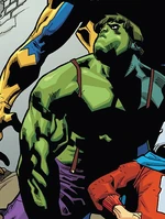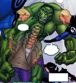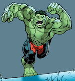 Con la sua ragazza Betty Ross, apparentemente l'unica persona in grado di riportare Hulk a Banner, e spesso inseguito dalla sua nemesi Thunderbolt Ross che è anche il padre di Betty, Bruce è spesso in fuga mentre ci prova per trovare una cura per il suo problema e mantenere la calma il più possibile mentre allo stesso tempo combatte i supercriminali. "Hulk" è stato creato da Stan Lee e Jack Kirby in 1962, apparendo per la prima volta in Incredible Hulk Vol 1 1.