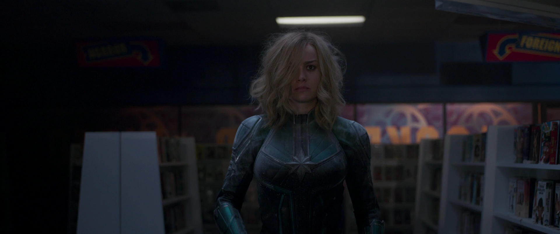 兄と野球をしている幼少期のダンヴァースのフラッシュバックでは、スティーブがボストンレッドソックスの「B」を着ており、彼女は赤と白のユニフォームを着ている。これはマサチューセッツ州ボストンでダンヴァース兄妹が育ったコミックが参照されている。