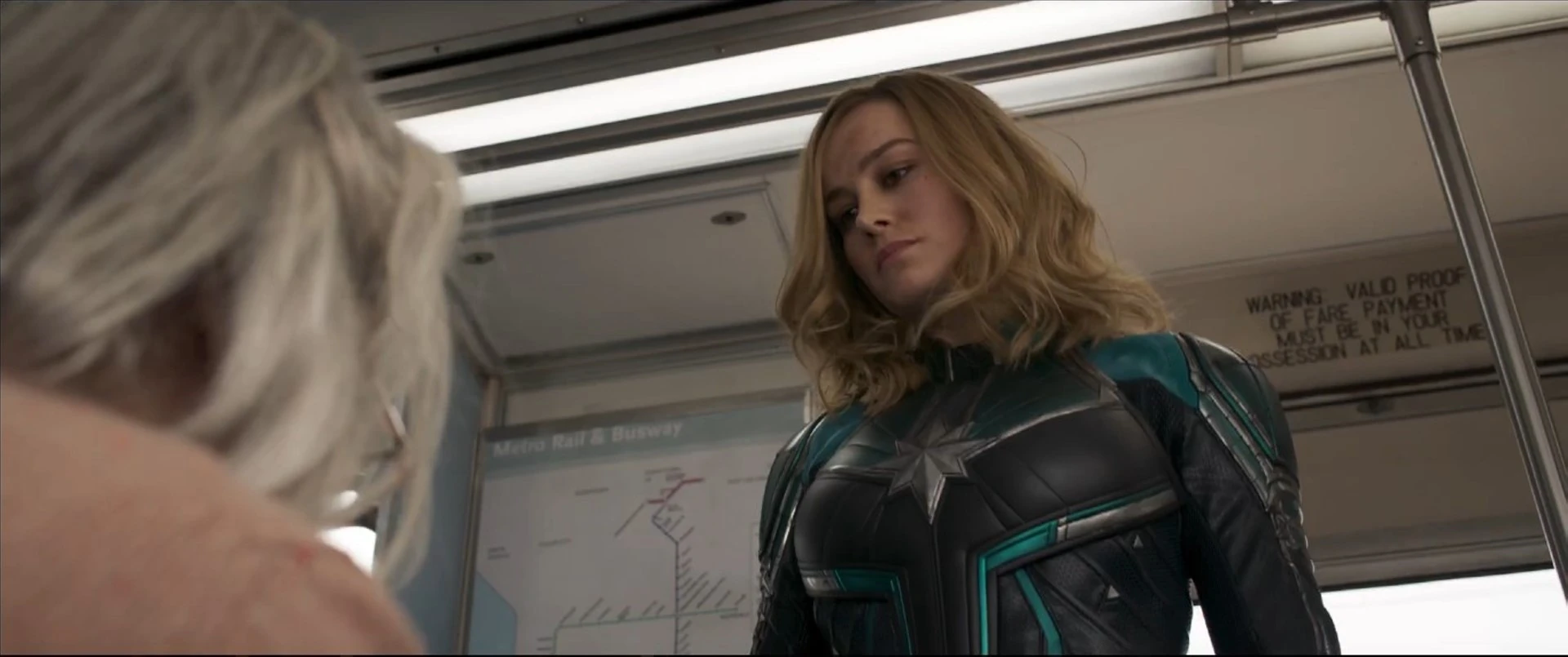 これらの攻撃が機体に損傷を与えたため、機体が機能を停止し、急降下し始めた。ダンヴァースは敵機を航空機から追い払おうとしたが、上手くいかず、航空機を着陸させようとしたが、墜落した。ダンヴァースは航空機から降りて、ローソンの様子を確認すると、彼女の血が青いことに気づいた。ダンヴァースが彼女が航空機から降りるのを助けた際、ローソンは自分がウェンディ・ローソンではなく、ハラ出身のマー・ベルだと明かした。その後、マー・ベルはダンヴァースにこの場から逃げるよう警告し、彼女が戦っている戦争に関わらせないようにしようとした。