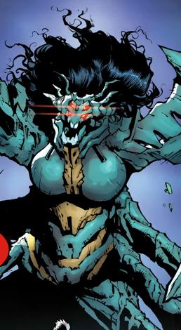 Mais tarde, ela lutou contra o Capitão América, o qual havia sido curado, e quase o derrotou. No entanto, Venom conseguiu feri-la mortalmente com escudo do Capitão América. De repente, ela começou a se transformar em um monstro-aranha de vinte e oito andares de altura, drenando poder de todos os mutantes de Nova York. Enquanto ela estava lutando contra dezenas de super-heróis, o Homem-Aranha usou os antigos octo-bots do Doutor Octopus para distribuir a cura para os milhões de Nova-Iorquinos.[7][8]