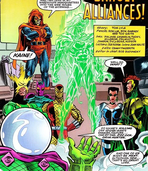 Ele reformou parcialmente o Sindicato Sinistro junto com o Homem-Hídrico e o Bumerangue. Este grupo tentou roubar a Casa de Leilões de Baily, mas foi interrompido pelo Homem-Aranha e pelos membros da Iniciativa Máquina de Combate e Komodo. Este último estava lá para neutralizar o Homem-Aranha. O trio escapou, apenas para ser encontrado e atacado por agentes do governo conhecidos como Aranhas Escarlates.[17]