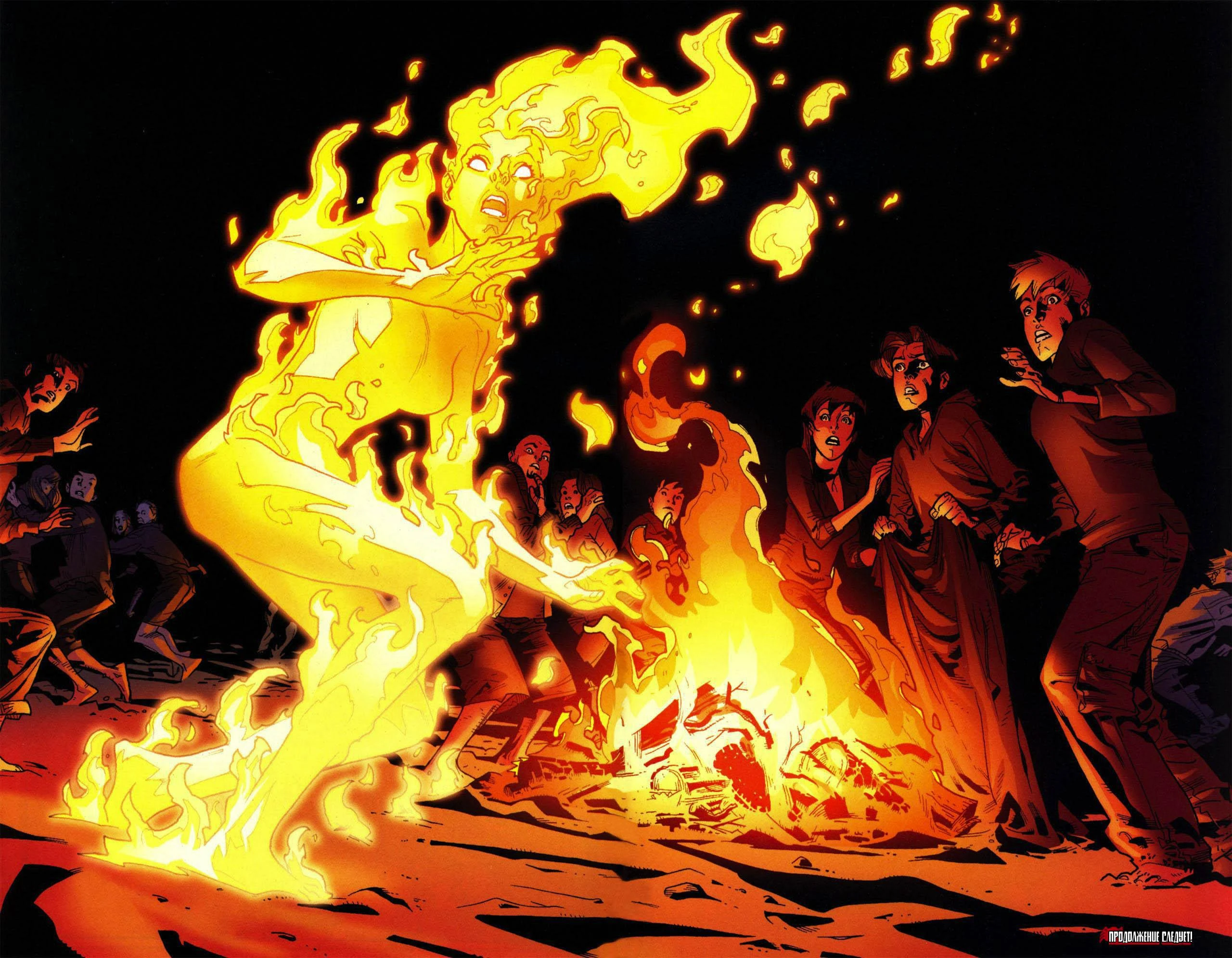 После того как инопланетное вторжение было отбито, Фантастическая четвёрка вернулась к повседневной жизни. Однажды вечером, когда Джонни ссорился с Беном из-за того, что тот сломал его аудиосистему, они оба услышали шум битвы с нижнего этажа Здания Бакстера. Спустившись, супергерои увидели, что на их друзей напали Китти Прайд, Бобби Дрейк и Логан. Когда Айсмен воздвиг между Росомахой и Существом ледяную стену, Человек-Факел помог расплавить её.[и 39]