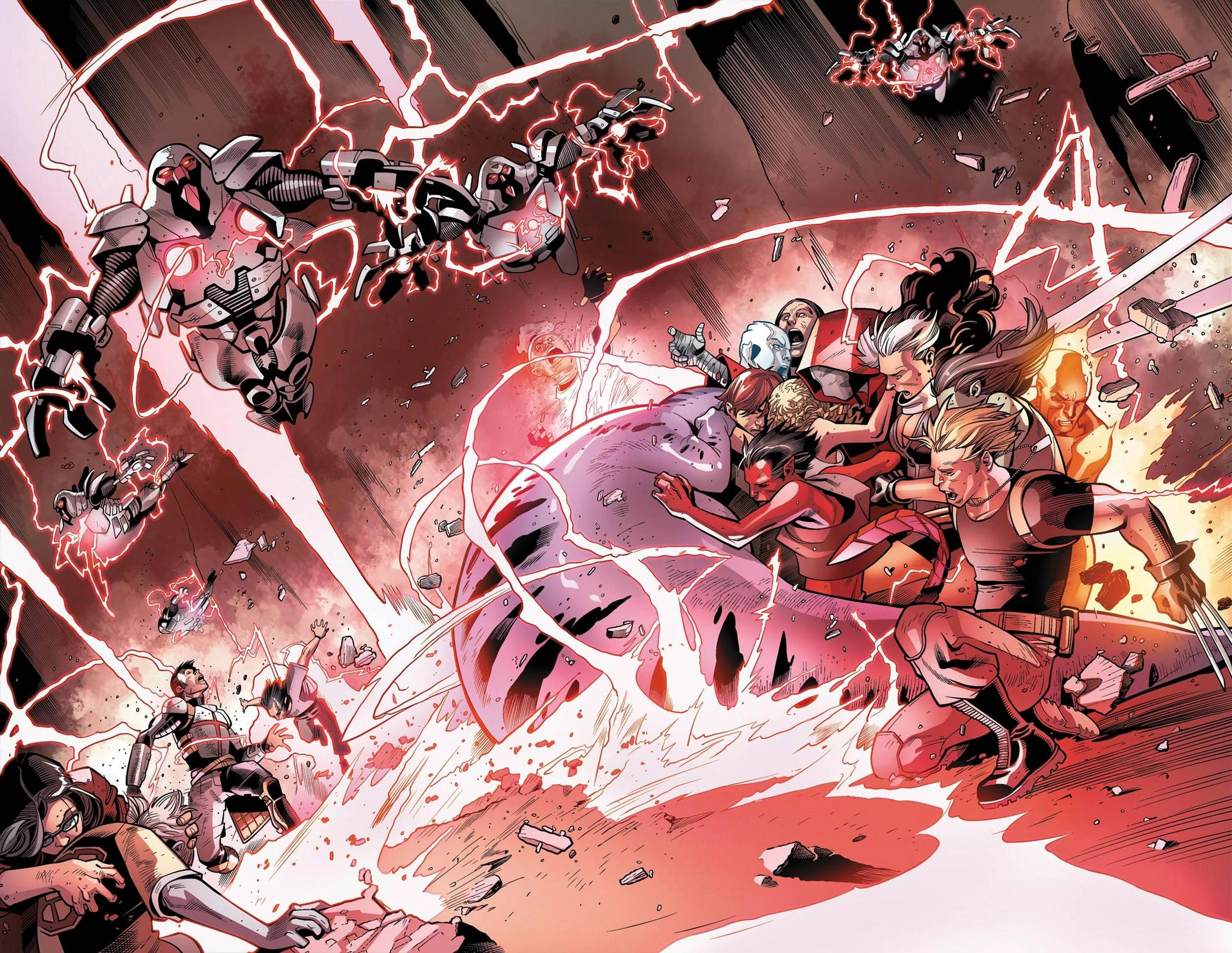 Сражение прекратилось, когда Логан потерял сознание, а Рид сообщил, что всему виной Рона Бёрчилл: она украла у Людей Икс Церебро и заставила мутантов поверить, что похитителями являются обитатели Здания Бакстера. Две команды объединились, и, когда были сделаны все приготовления к битве, отправились к логову врага. Джонни Шторм и Бобби Дрейк добирались по воздуху и устроили дружеское состязание в скорости. Когда все герои прибыли, Бёрчилл с помощью Церебро проникла в их мозг, но Ричардс увеличил силу суперкомпьютера, и злодейка не смогла выдержать нагрузки. Рона попыталась сбежать на летательном катере, но погибла, поскольку пришедший в себя Росомаха вывел транспорт из строя.[и 40]