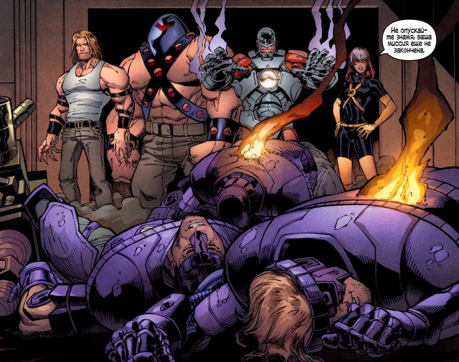 Позже, используя способности Шельмы, Оружие Икс узнало местоположение штаб-квартиры Людей Икс, Института Ксавье для одаренных подростков,[и 2] и предприняло нападение на особняк. В ходе схватки им удалось захватить в плен всех мутантов, кроме Росомахи, отсутствовавшего в тот момент в особняке.[и 3] Люди Икс были доставлены на базу, после чего организация занялась их тренировкой и модификацией.[и 4] Райт не оставил попыток найти Росомаху и ему это удалось. Логан был доставлен на базу, но вскоре доктор Корнелиус нашел на рентгене в желудке мутанта маячок, который навел на финскую базу Братство мутантов. При помощи Чарльза Ксавье руководство организации попыталось шантажировать ЩИТ, но когда те все же урезали бюджет Оружия Икс Джон Райт приказал взорвать штаб-квартиру ЩИТ в Нью-Йорке, из-за чего сильно пострадал директор Таддеус Росс.[и 5] Братство мутантов освободило мутантов и те вместе с ними дали бой солдатам Оружия Икс. В решающий момент появился новый директор ЩИТ Ник Фьюри. Он убил Райта, пытавшегося лишить жизни Ночного Змея, после чего закрыл Оружие Икс.[и 6]
