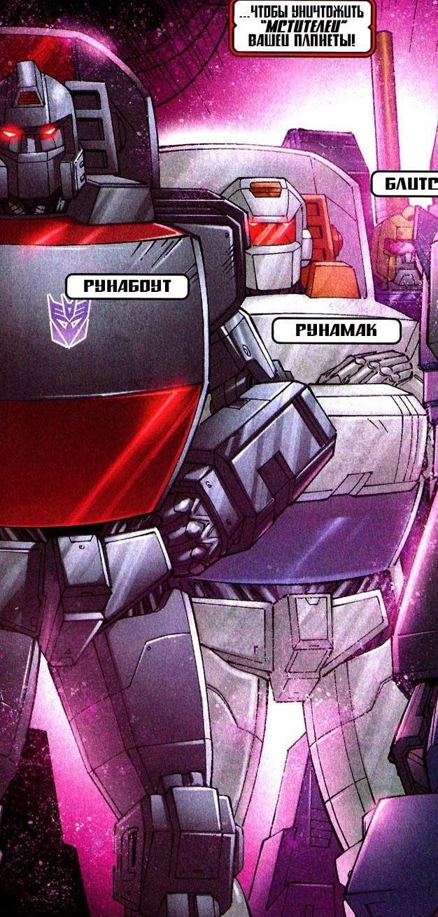 Ранэбаут входил в состав отряда десептиконов, которые вместе с их повелителем Мегатроном прибыли на Землю и обосновались на территории Латверии. Когда несколько земных супергероев проникли внутрь сферы, Ранэбаут получил приказ схватить Человека-Паука и доставить его к Мегатрону. Десептикон сначала обездвижил Паучка парализующим выстрелом, а затем увёз его так быстро, что никто из Мстителей не успел ему помешать.[и 1]