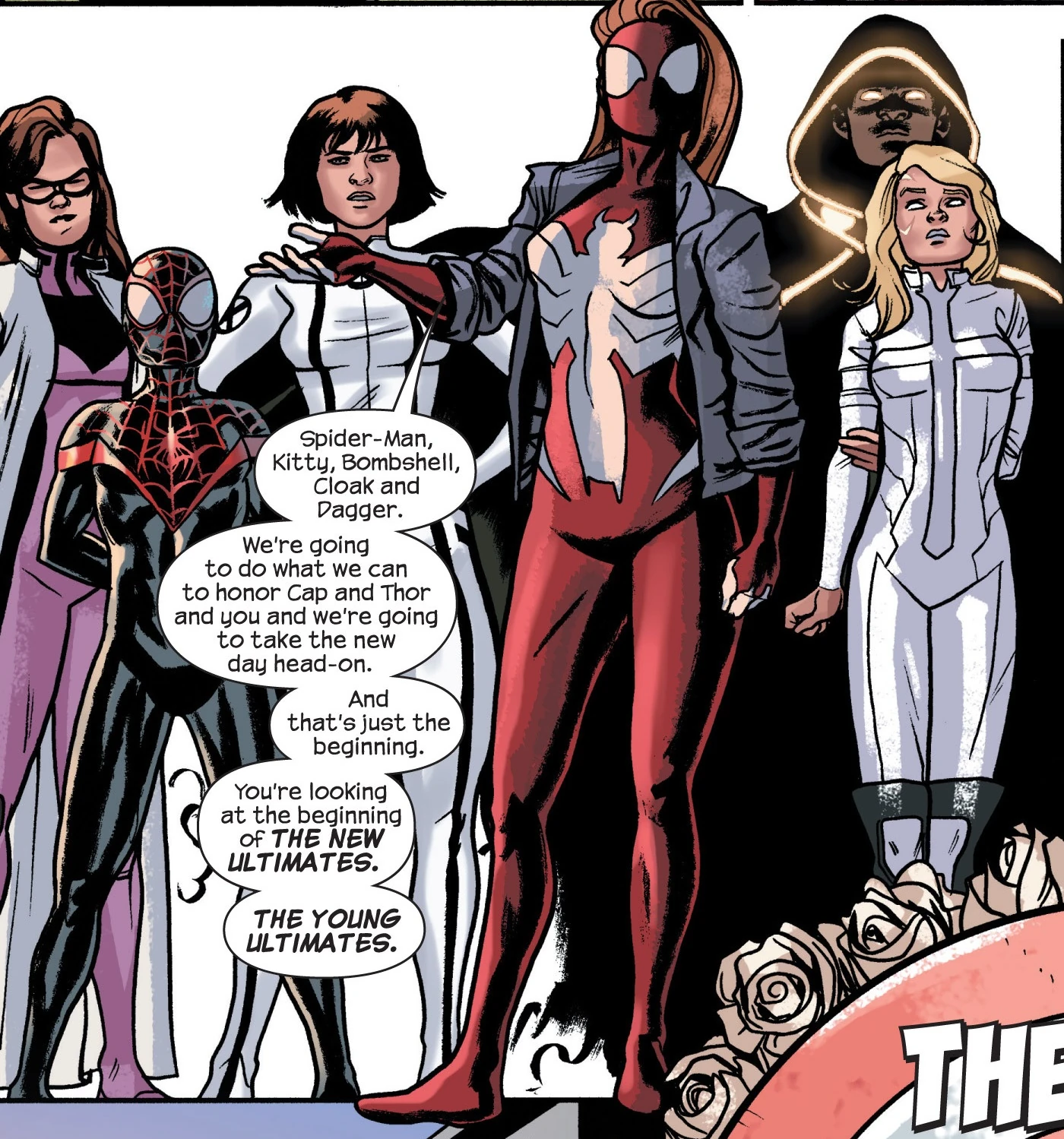 Вскоре, Кинжал с Плащом заметили исчезновение Майлза, и оповещают об этом Китти Прайд и Бомбочку. Во время поисков, Кинжал и Плащ встречают в квартире Моралесов, парня по имени Джадж, соседа по комнате Майлза, который тоже искал его. После этого, Молодые Алтимейтс обращаются за помощью детективу Марии Хилл, и капитана полиции Фрэнка Куэйда. Благодаря информации одного из офицеров о происшествие на складе в Статен-Айлендегде, они находят Майлза и Черную Вдову одолевшие Доктора Дума и его подручных. В этот момент, Кинжал оглушает Кэти, по чьей вине Майлз был схвачен. После того как близкие Майлза были спасены, то Кинжал с остальными становятся свидетелями неземного феномена, видя как на них надвигается Земля из вселенной-616.