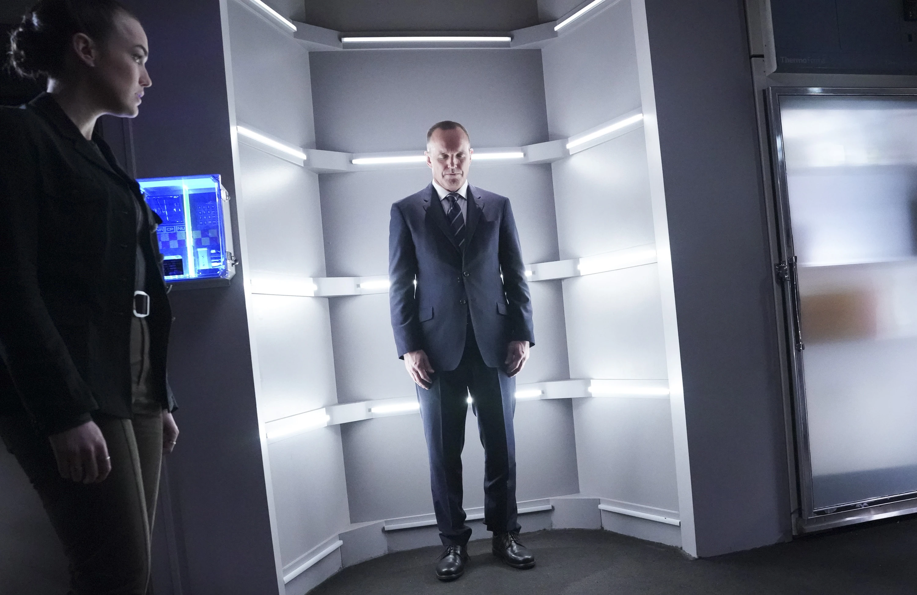 Используя аппаратное обеспечение Хроноков и все данные о Филе Колсоне, которыми они располагали, Енох, Фитц и Симмонс сумели создать жизнеспособная модель Колсона, которая станет их экспертом в истории ЩИТа и поможет им выяснить, что собираются делать Охотники. Деактивированный Колсон был доставлен на «Зефир-Один», где его активировала Дейзи Джонсон и проснувшись Коулсон поприветствовал Симмонс, Джонсон и Маккензи предложил свою помощь, чтобы остановить Хроников.[и 1]