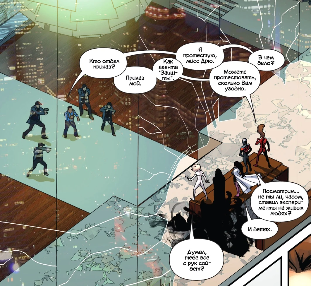 Однако, позже охрана сообщила Роксону, что Таскмастер проиграл в битве против, Женщины-Паук, Нового Человека-Паука, Бомбочки, Плаща и Кинжала, которые вломились его в корпорацию. Во время разговора, Роксон угрожал всем пятерым, зная их личности, и что новый Человек-Паук лишился матери из-за симбиота, которого его люди создали, на что Майлз не выдержав, в ярости, вначале ослепил Роксону лицо паутиной, затем выбросил из окна, повис его паутиной вверх ногами. Когда к зданию прилетают полицейские вертолёты, Майлз слушал, угрозы Роксон, который советовал ему узнать, кем был отец до его рождения, но по приказу ЗАЩИТЫ, с которыми связалась Джессика, полиция улетела. После того как супер-герои одолели Мозговую команду, то Роксон вместе с ними был арестован агентами ЩИТ.[и 3]