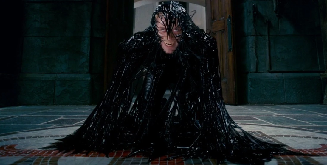 - В ходе драки между Человеком-Пауком и Веномом внутри здания, Веном должен был набросить на лицо Паука свою паутину, которую последний пытался выдернуть.