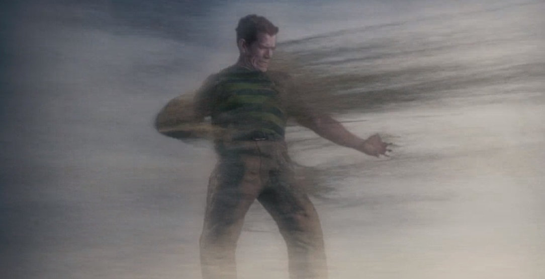 Убегая от полицейских, Флинт Марко попадает на территорию испытательного полигона физического института. Там он спотыкается и падает в экспериментальную кабину. Как раз в этот момент учёные запускают эксперимент. Преступник оказывается внутри механизма. Поднимается облако песка. Тело беглеца принимает ту же молекулярную структуру, что и песок, и к концу эксперимента рассеивается по всей территории кабины. Полицейские находят там только груду песка.