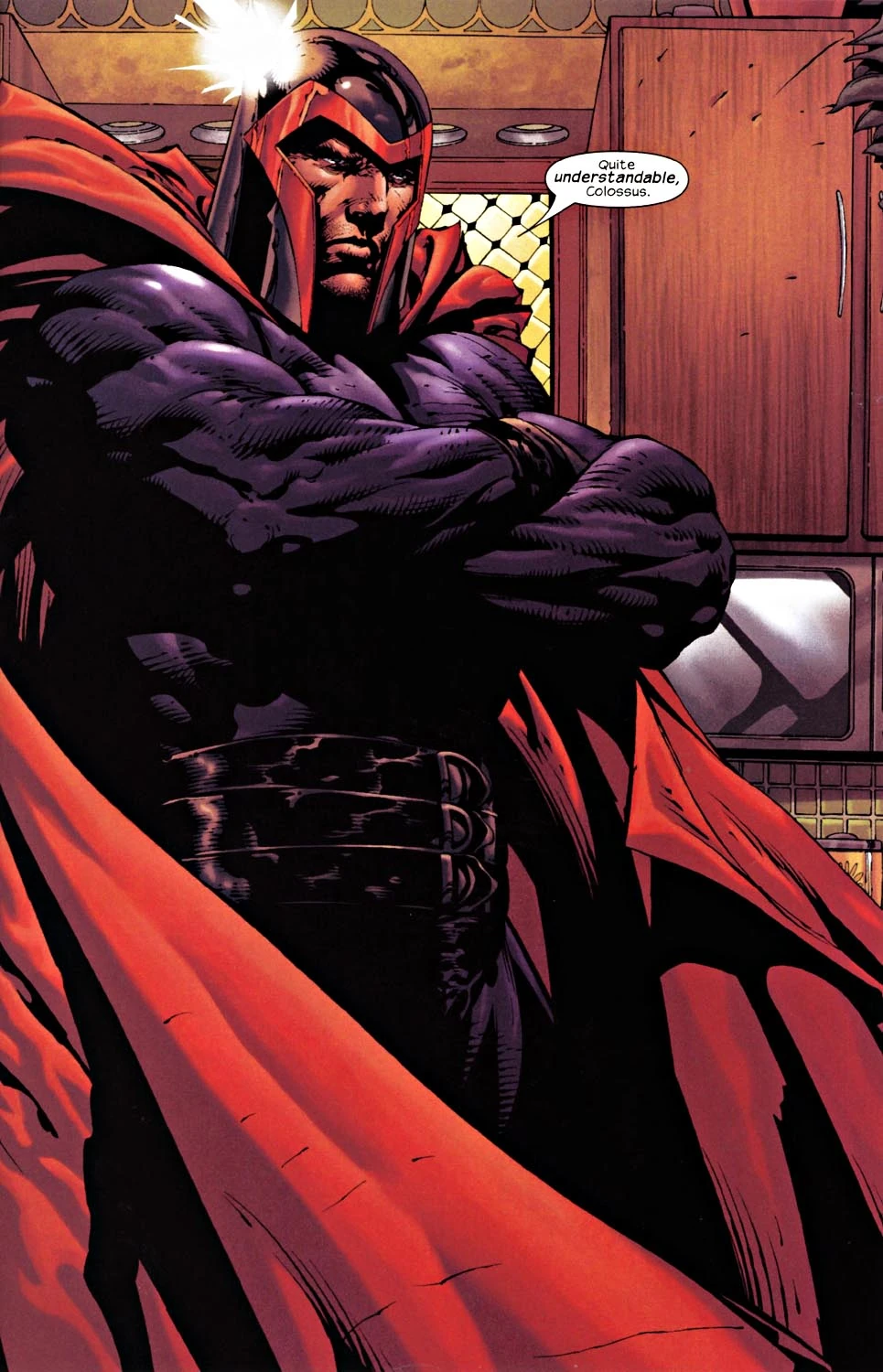 - Шлем: Магнито всегда носит шлем, защищающий его разум от телепатического воздействия извне.