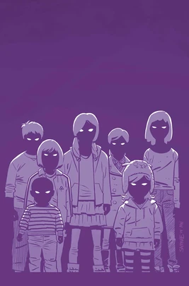 A group of purple-tinted children tap on the window of another child, Jamie, and then they break right through the glass. Jamie’s mother rushes into the room but is repelled and apparently sickened by the children’s powers. She tries to call for help but the Purple Man appears and convinces her to commit suicide by jumping off the building’s roof. He gathers his children and leaves.