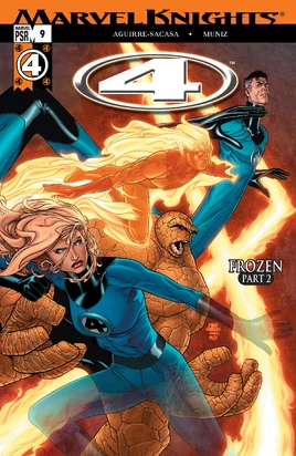 Human Torch burns a hole in the ice while Namor dives in and conducts the search. While he's below, Mr. Fantastic and Human Torch have a conversation in which Mr. Fantastic reveals how proud he is of him. Human Torch has matured a lot throughout the whole experience with the bankruptcy and eviction of the Fantastic Four, and his work as a fire man.