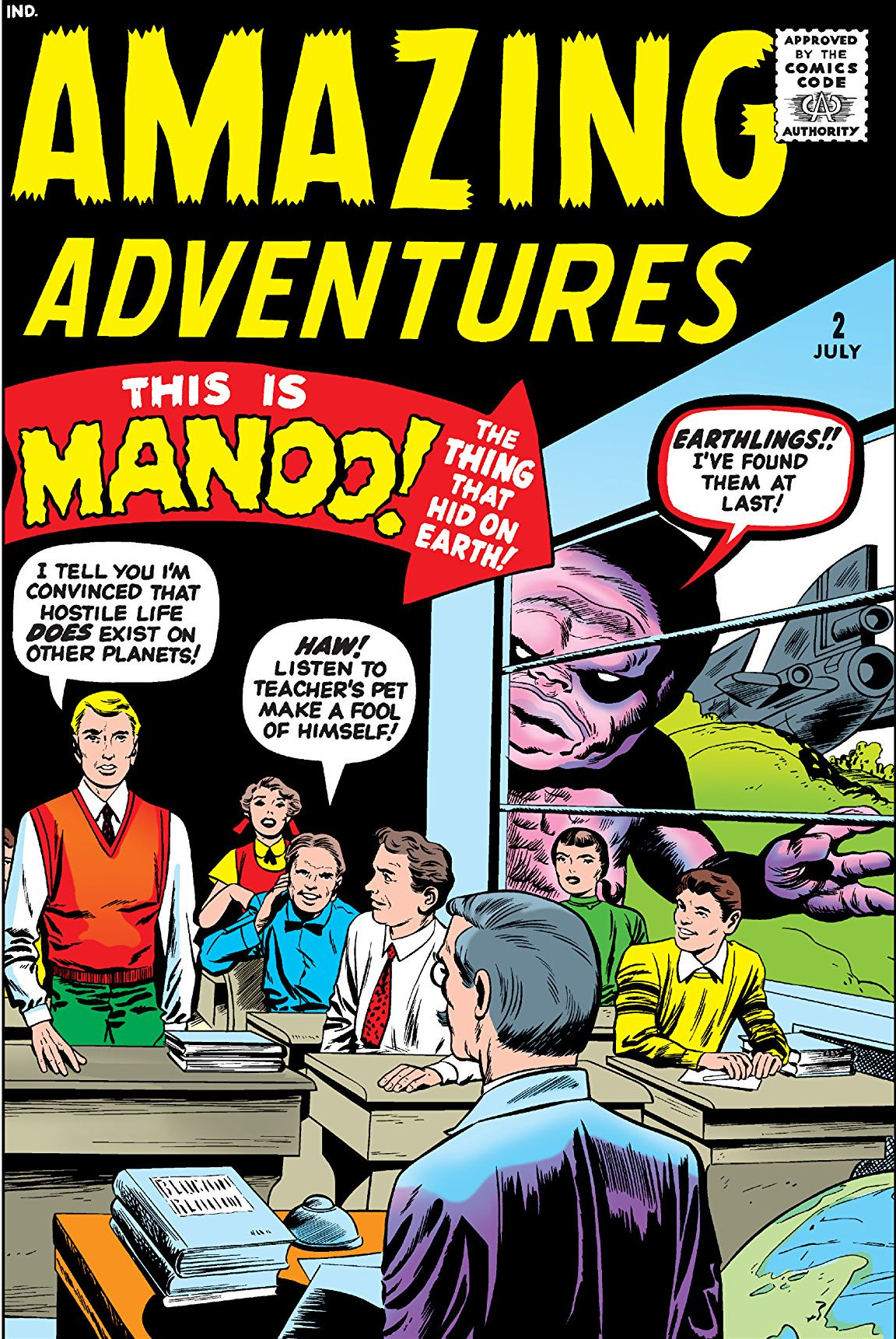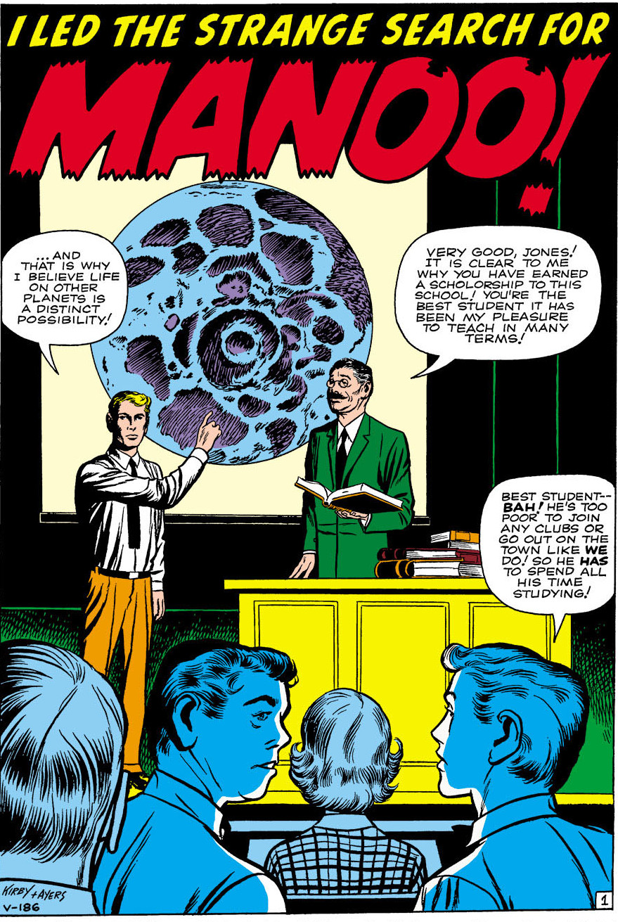 A high school student comes across a crashed alien ship and the creature lying nearby tells him that he is pursuing a criminal named Manoo who endangers all of Earth. He tells the lad he is too weak to carry on the hunt and gives him a ray gun to blast him with. Manoo is a shape-shifter but he can be discovered by noticing that he will not cast a shadow in his disguise. The boy finally checks a theater and discovers Manoo. He finds that he can't just gun the alien down in cold blood despite how dangerous he may be. When he explains everything to Manoo, Manoo tells him that he's been tricked, and the criminal he's been pursuing was the one at the crash site. The boy goes along with his plan to take Manoo back to the crash site supposedly under guard so he can stand trial on his home world. When he returns, the first alien is angry the boy did not shoot Manoo and he and Manoo begin to battle. The boy is undecided on who he should aid until the first alien grabs him and threatens his life if Manoo does not capitulate. The boy escapes his grasp by grabbing a low tree branch and Manoo defeats the criminal alien. Before departing Earth, Manoo rewards the boy with a huge gemstone, making the formally impoverished student very wealthy.