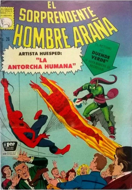 Flash figures that if he says it's so, Spider-Man won't disappoint his fans, and Peter realizes he ought to show, but doesn't know how. As the discussion continues, his Spider-Sense goes off from a mysterious figure in a purple hat whom he doesn't recognize. Finally, Spider-Man goes to the fan club meeting and as he swings in, his web line is snapped by an electronic frog. Johnny Storm sees this and realizes that the acrobatic maneuver Spider-Man just did to land to save his life wasn't part of the show. His suspicions are confirmed when Green Goblin enters on his new improved glider. The crowd, thinking it's part of the show goes along with it, cheering Spider-Man in the fight. Realizing it's not an act, Johnny becomes Human Torch and battles Green Goblin.
