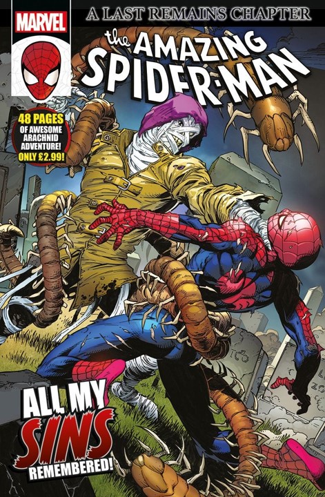 As Kindred taunts Peter with Mary Jane's arrival, he also shows Sin-Eater's encounter with the Order of the Web, narrating the futility of Peter's "fight to the end" philosophy. The Order of the Web find the Sin-Eater, who tells them that the sins he gathered possessed them into rampaging across New York City, and he aims to reclaim those sins. In the ensuing fight, they find he is more powerful than before, with Jess noting that his syphoning her life force is Morlun's power.