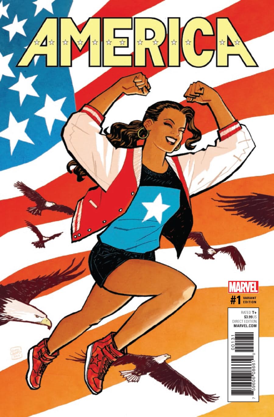 Written by critically-acclaimed YA novelist Gabby Rivera (Juliet Takes A Breath) and drawn by all-star artist Joe Quinones (HOWARD THE DUCK), Marvel Comics’ brand new AMERICA series shines a solo spotlight on the high-octane and hard-hitting adventures of the one and only America Chavez!