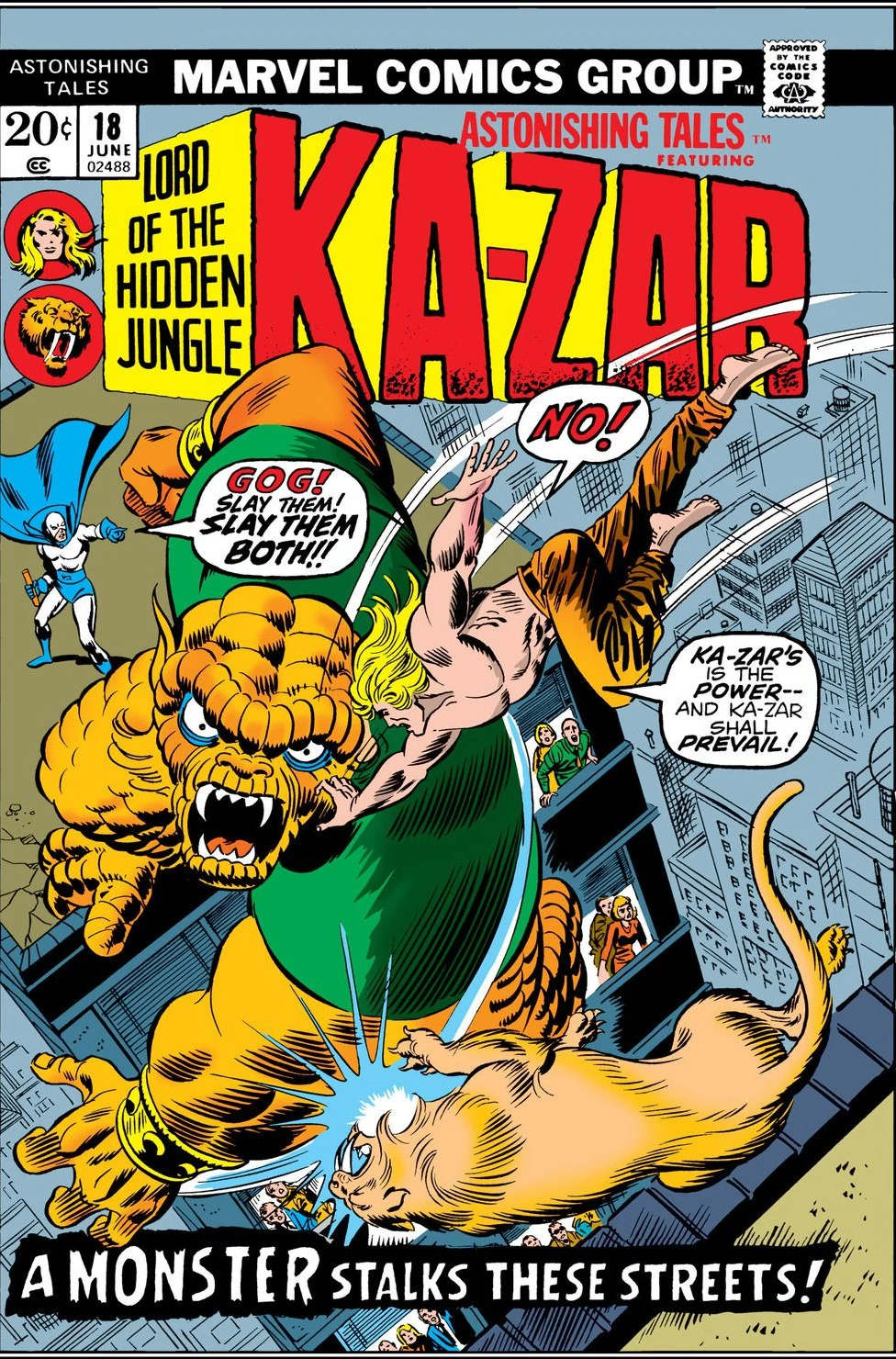 Morse and Zabu arrive in a SHIELD helicopter. While Zabu fights Gemini and Gog, Bobbi attempts to bargain with Plunderer. He refuses and orders Gog to teleport them to AIM's English HQ. Instead, Gog teleports everyone to Liberty Island and doubles in size in the process. Plunderer realizes that he's lost mental control of Gog as the monster tears the torch-bearing arm off the Statue of Liberty in his attempts to communicate with it. When Gog teleports away with Zabu, Bobbi and Ka-Zar work together to get the serum back from Gemini and Plunderer before the villains escape. They then find Gog, larger still, straddling the roofs of the twin towers of the World Trade Center with Zabu cowering near one of his feet. Just as Bobbi and Ka-Zar's aircraft reaches Gog, he speaks his alien language and disappears in one last burst of teleportation, leaving Ka-Zar to suspect Gog merely wished to be free of Earth and embrace his true fate among the stars.