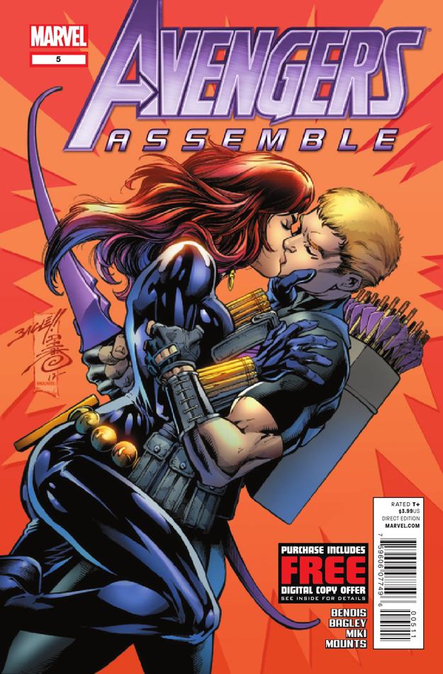 As the two teams intermingle and compare notes at Avengers Tower, Hawkeye notices Black Widow was wounded in the S.H.I.E.L.D. Helicarrier battle. Taking her aside to dress her wounds, the two have a moment together. Starting out as a "pep talk" drawing from their long interpersonal history and former partnership, it escalates into awkward romantics, leaving both of them confused and uneasy as to what just happened.