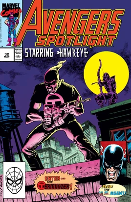 After discovering the body of Reynaldo Cortizar, who died on a street where a large T was painted, Hawkeye decides to go out and fight crime. Meanwhile, a gang of criminals called the Stone Perfs finds a threatening message accompanied by a large yellow T. Upon asking what it means a man steps out of the shadows declaring that it means "Terminizer" and guns the Perfs to death. Flying into Perf territory, Hawkeye begins to clear out criminals, but after clearing out the criminals, Terminizer appeared, killing the incapacitated Perfs. Upon returning to the Avenger's Compound, Wonder-man informs Hawkeye of the news in which the reporter claimed that Hawkeye had declared war on the gangs of L.A.