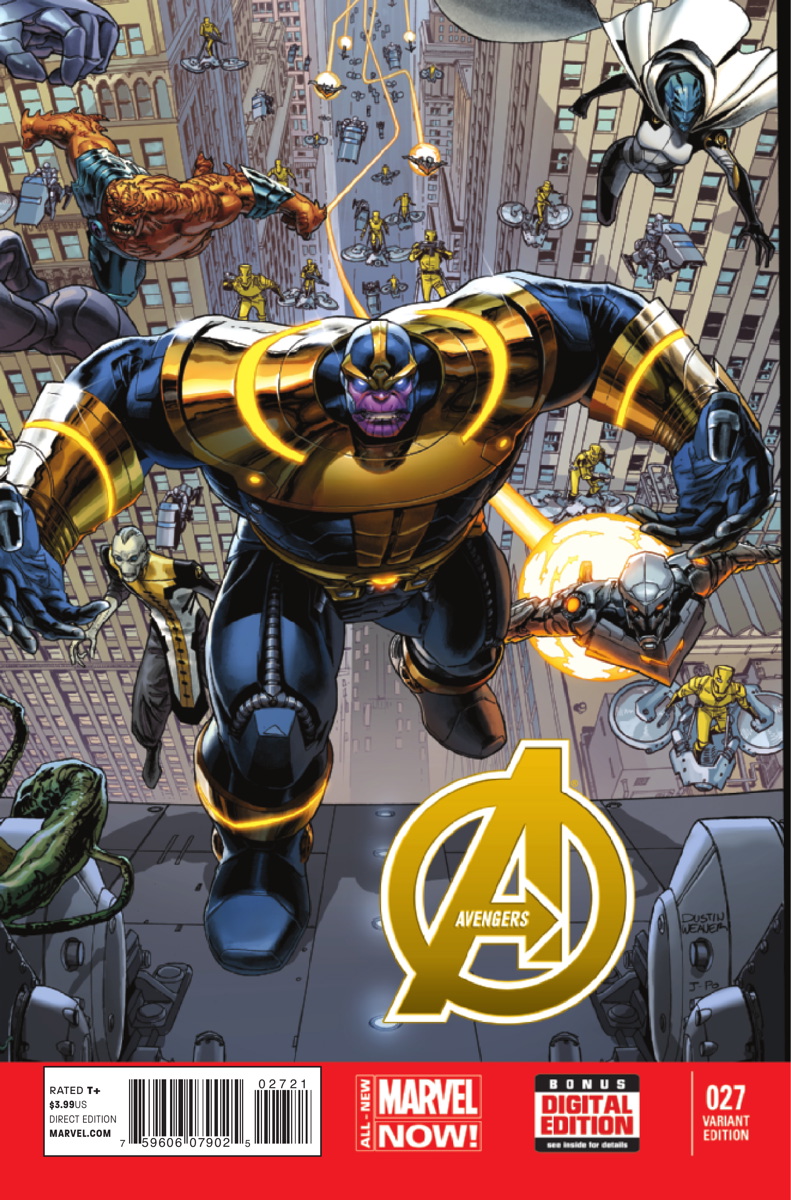 Meanwhile, the native and variant Avengers teams battle in New York. Iron Man unmasks his counterpart and learns that rather than an alternate Tony Stark, he is a version of Edwin Jarvis who murdered his universe’s Howard Stark and an infant Tony. Iron Man then hits Jarvis with a close-range repulsor blast to the face. Earth-616’s Avengers continue to get the better of their variants until one of the two Hulks arrives. The fight continues until a squad of A.I.M. agents shoots the entire group with a tachyon cell, freezing them inside a time bubble. A.I.M. then extracts the alternate Avengers - including one of the two Hulks - and leaves the native heroes behind.