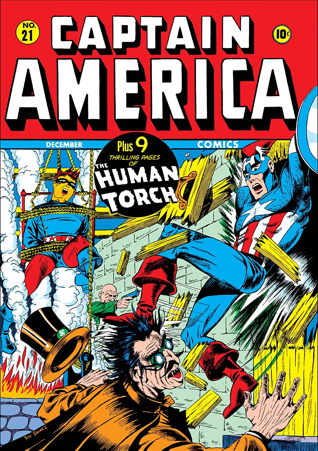King Dane, pledging loyalty to the Allies, gives Ambassador Lissom his nation's historic three-gem ruby ring to wear when signing the USA's treaty with Alslavia. Later, the Creeper steals the ring, without whose symbolism Alslavia may not accept the treaty. Discovering the Creeper's men robbing a USO headquarters, Cap and Bucky knock them out but allow one to escape. He leads them to the Creeper's hideout, where they defeat the criminals. One shows them the first ruby's hiding place and directs them to the second at another hideout. There, the Creeper imprisons them in his dungeon but Cap escapes his bonds and hurries to the treaty signing without freeing Bucky. At the signing, Cap defeats the Creeper unmasking him as Lissom. Cap returns to the hideout disguised as the Creeper and sends the henchmen to the hall, where the FBI await, and President Roosevelt himself dons the ring to sign the treaty.