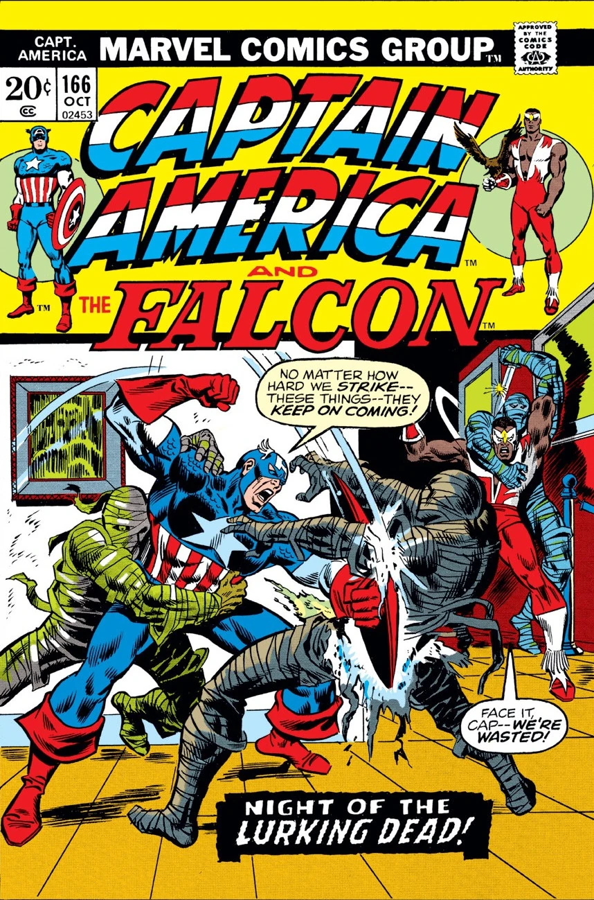 Cap and Falc trail the Yellow Claw to the Museum of Natural History. They quickly encounter mummies the Claw has reanimated from the Museum. Cap and the Falcon eventually defeat the mummies by cutting them apart (The Falcon uses a medieval sword to do so, Cap uses his shield). However, the duo are seized from behind by a two giant zombie minions of the Claw. Captain America and the Falcon are forced to watch the Claw's latest sinister act. Plan Chu recites a spell that transplants the evil spirit of the long dead Princess Fan-Le-Tamen into the body of his good-hearted niece Suwan. To be continued...