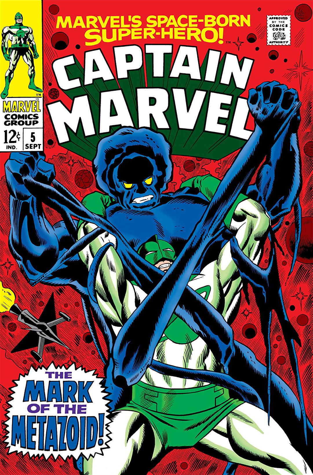 Back on Earth, Communist agents are plotting to capture Walter Lawson by sending their latest super-powered agent the Metazoid -- a being mutated to have the metabolism of 50 men -- to capture Lawson. Meanwhile, Mar-Vell returns to Earth and assumes his identity as Lawson. Returning to the Cape he deflects the suspicions of Carol Danvers about "Lawson's" activities. Traveling to the hospital where Logan is recovering, Mar-Vell is attacked by the Metazoid before he can erase Logan's memories. Changing into his Kree armor, Mar-Vell battles, but tries to avoid killing the creature.
