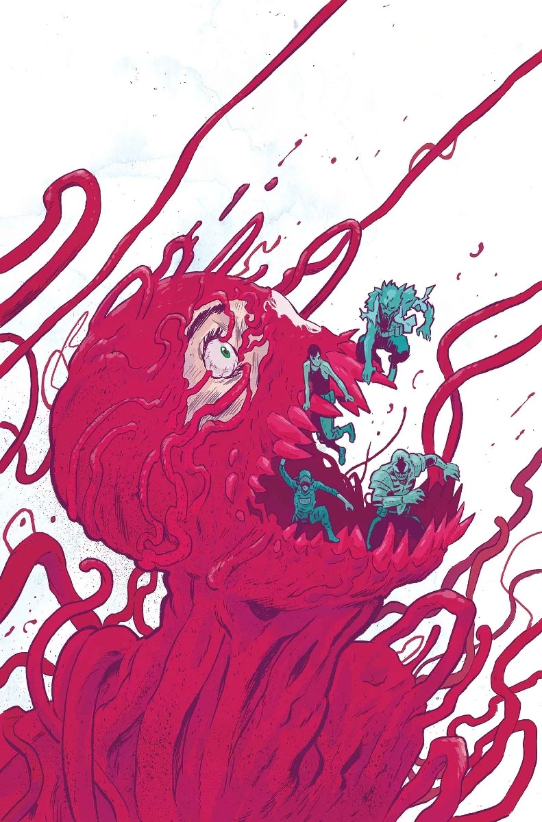 Watching Chthon eat, Carnage thinks to himself that he's been a killer his whole life, not out of hatred or rage but because he enjoys it and it's how he gives himself a sense of importance. Noting that after a while even killing gets cold and the stakes have to be raised, he approaches Chthon and demands to be rewarded with power for freeing him. Chthon contemptuously backhands Carnage hard enough to fracture the ground, and begins chanting a spell to summon other evil Elder Gods. As tentacled shapes begin to rise from the abyss, Chthon is blasted from behind by a torrent of light magic and turns to see Jubulile, who says she won't let him summon more of his own kind. Chthon asks who she is in eldritch speech, and Jubulile states she is a child, a woman, an heir to humanity, and that she will defy him on behalf of everyone she knows and loves before blasting him again.