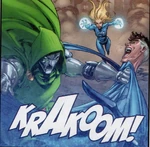When a time-traveller Doctor Doom tried to change the past to save Valeria's life, he wanted to kidnap her, but the Fantastic Four arrived and stopped him.[11] |