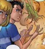 Fusion was among the future enemies of Spider-Man who joined Peter on stage during his first-grade play. This reality was viewed by Earth-616 Peter Parker in his dreams.[25] |