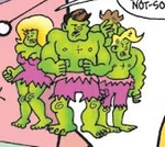 The Fantastic Four were bombarded by Gamma Radiation instead of Cosmic Radiation. This reality formed when Annihilus (Earth-77640) attempted to conquer the space-time continuum.[3] |