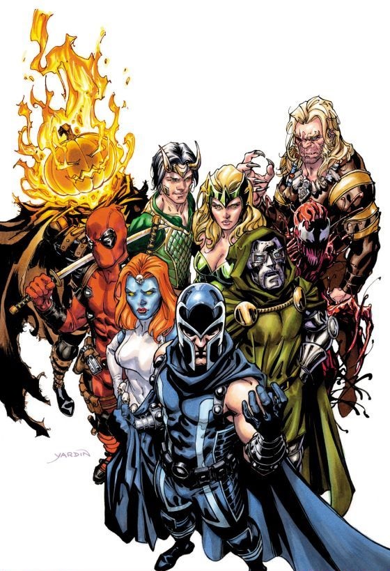 When the Red Onslaught was unleashed, Magneto recruited numerous villains to stop the madman's Stark Sentinels. He approached Carnage in his self-confinement, and convinced Cletus to join him as there would be nothing more chaotic than him saving the world.[92] Noticing Deadpool was part of Magneto's team, Carnage joined intending to exact revenge, but following the inversion spell which changed the moral axis of those in the island, they parted amicably.[93]