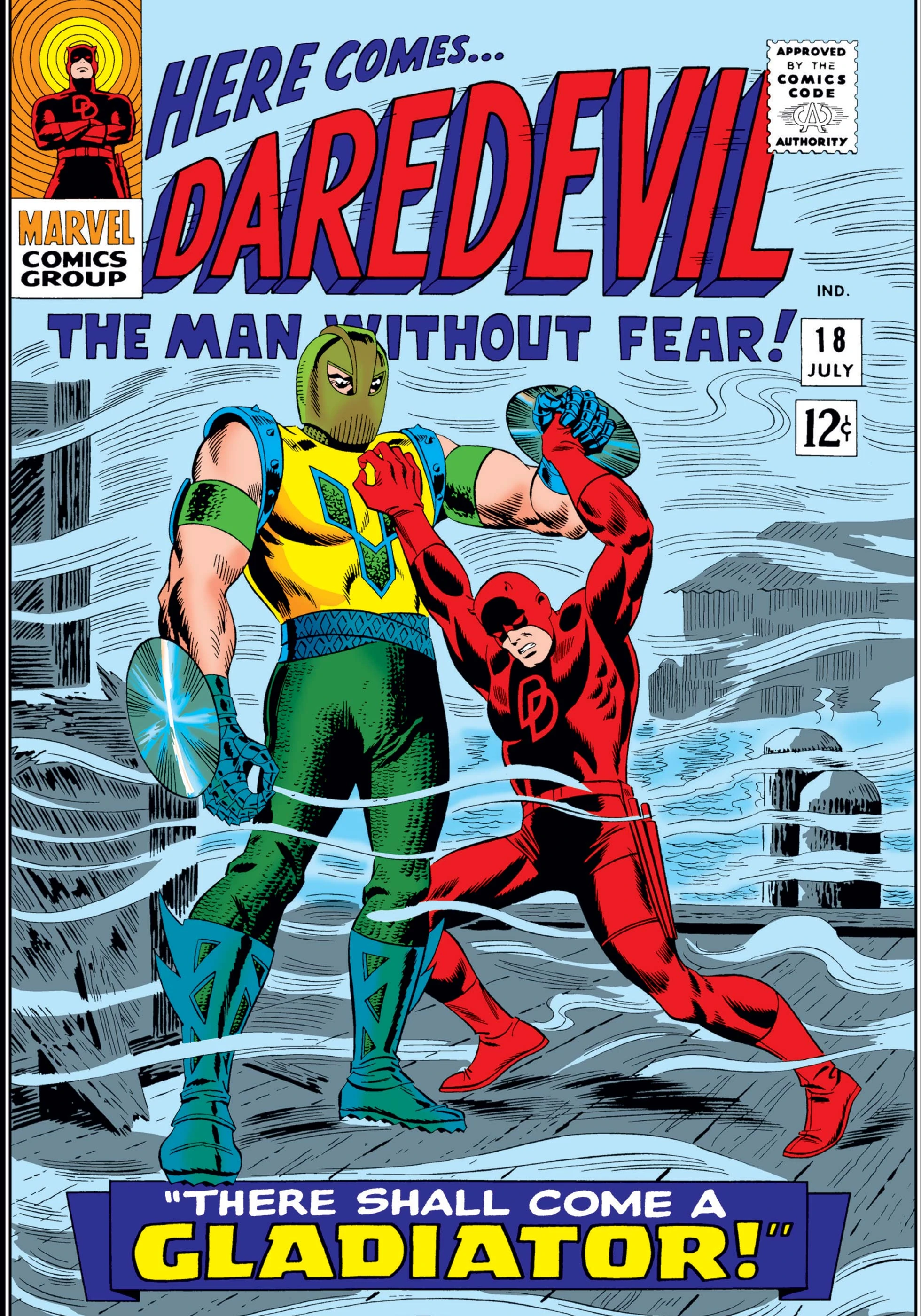 As Foggy takes Karen out on a date (little knowing they're being followed by Daredevil) the costume maker has made his own costume in an attempt to be a real villain, dubbing himself the Gladiator, he goes out to the designated meeting place for their battle. When Foggy puts on his Daredevil costume and fights the Gladiator, he soon realizes that the Gladiator is playing for keeps. Realizing that Foggy was faking the whole time Karen flees to get help just as the real Daredevil arrives to fight off the Gladiator.