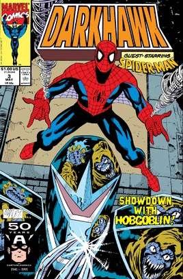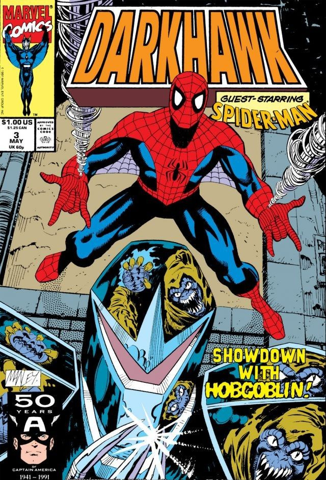 New hero, Darkhawk, found the tech Hobgoblin was also seeking out. So, Hobgoblin is trying to take it from him. They end up in a fight with Spidey aiding Darkhawk.