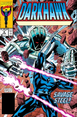Some of the dark secrets of the Darkhawk Amulet - the source of his power - are revealed as the novice hero takes on a dangerous new foe named Savage Steel.
